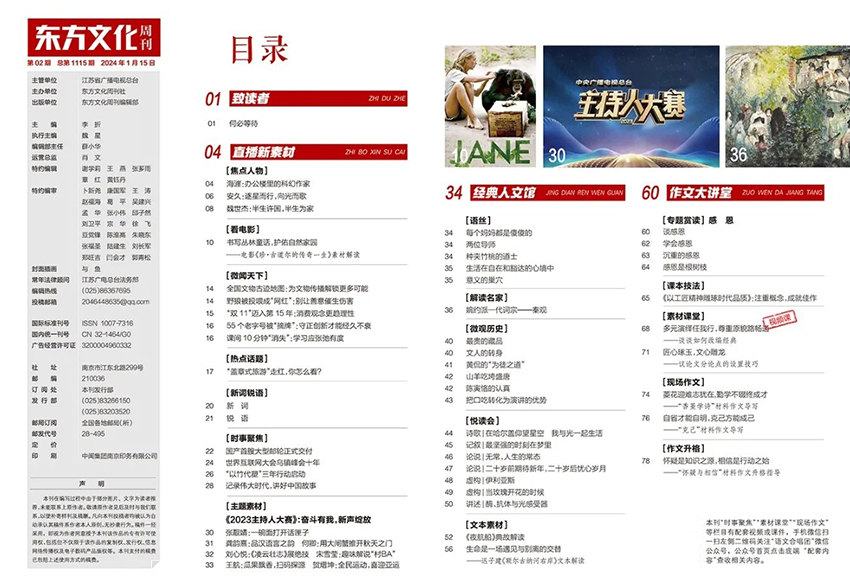 該雜志以豐富的文化內(nèi)涵引領(lǐng)了學(xué)生的思想啟迪。書中的素材融合了東方文化的傳統(tǒng)底蘊和現(xiàn)代人文情懷,讓學(xué)生在感知東方傳統(tǒng)的同時,也能夠找到與自己當(dāng)下生活實際聯(lián)系的點。通過對這些素材的理解和思考,學(xué)生的文化自信心得到了提升,內(nèi)心的思想境界也得以升華。