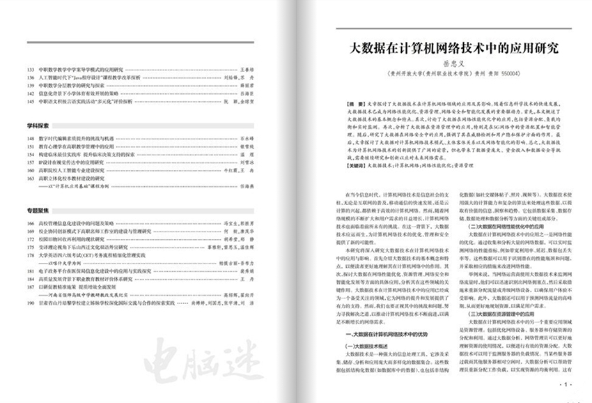 它為讀者提供各種技巧和要點(diǎn),涉及如何保護(hù)個(gè)人隱私、網(wǎng)絡(luò)安全和數(shù)據(jù)管理等方面。這些實(shí)用的指南可以幫助讀者更好地利用電腦和互聯(lián)網(wǎng)該雜志致力于為讀者提供電腦技術(shù)、科技前沿和互聯(lián)網(wǎng)文化方面的最新信息和實(shí)用知識(shí)。無(wú)論是對(duì)于從事相關(guān)行業(yè)的專(zhuān)業(yè)人士,還是對(duì)電腦技術(shù)和互聯(lián)網(wǎng)感興趣的普通讀者,本雜志都是一個(gè)寶貴的資源。會(huì)定期發(fā)布專(zhuān)題報(bào)道和深度分析文章,探討人工智能、物聯(lián)網(wǎng)、區(qū)塊鏈等新興技術(shù)對(duì)社會(huì)、商業(yè)和個(gè)人生活的影響。無(wú)論你是對(duì)科技前沿感興趣還是希望了解科技對(duì)社會(huì)影響的深入報(bào)道,該雜志都會(huì)滿足你的需求。