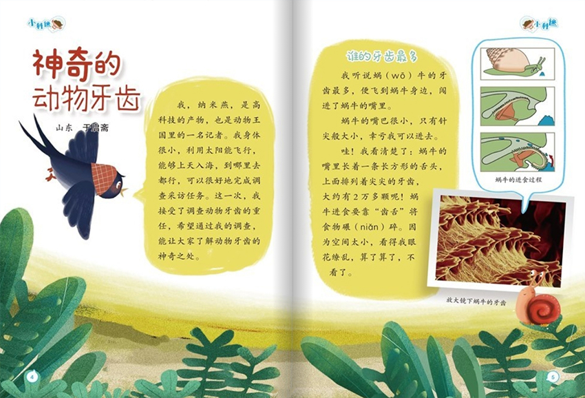 這本雜志的內(nèi)容包含了有趣的故事傳播知識,用豐富的表述介紹大自然的精彩與奧秘,是孩子的好老師,好伙伴,超級棒的一本書籍,孩子很喜歡看的。