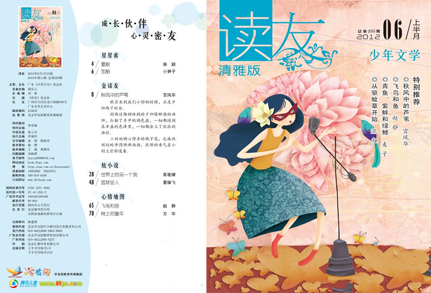 本人感覺《讀友》是一本適合9歲到99歲公民閱讀的文摘類好雜志。雖是初次閱讀,便已愛不釋手。真的,這是一本我看過的最能觸動(dòng)心靈的好雜志,一本能讓人發(fā)現(xiàn)自我,熱愛生活的好雜志。對(duì)于想提升語文閱讀與寫作素養(yǎng)的人來說,《讀友》更是最佳選擇!