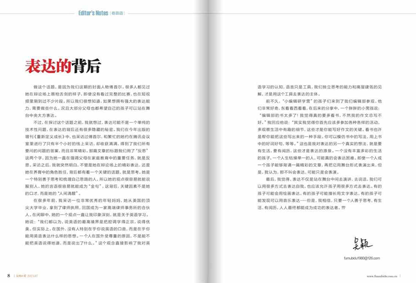 此外,品質(zhì)教育也是該雜志的重要內(nèi)容之一。品質(zhì)教育強(qiáng)調(diào)培養(yǎng)孩子正確的價(jià)值觀和道德觀念,使其成為有品德的人。通過文化故事、實(shí)例分享和親身經(jīng)驗(yàn),雜志向家長(zhǎng)介紹了培養(yǎng)孩子正直、寬容、勇敢和誠(chéng)實(shí)等品質(zhì)的方法。該雜志還注重鼓勵(lì)孩子發(fā)展其興趣和特長(zhǎng)。無論是音樂、繪畫、體育還是科學(xué)技術(shù),雜志都提供了相關(guān)的指導(dǎo)和建議,幫助家長(zhǎng)發(fā)現(xiàn)和培養(yǎng)孩子的潛力。