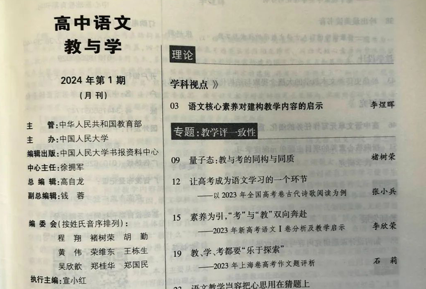 《高中語文教與學(xué)》雜志是一本專注于高中語文教育領(lǐng)域的雜志,旨在促進(jìn)高中語文教學(xué)的創(chuàng)新和發(fā)展,推動(dòng)學(xué)科建設(shè)和教學(xué)改革。該雜志圍繞高中語文教學(xué)的理論研究、實(shí)踐探索和案例分析,為廣大語文教師和研究人員提供了一個(gè)交流和分享經(jīng)驗(yàn)的平臺(tái)。對推動(dòng)高中語文教育的發(fā)展和提高教師教學(xué)水平起著重要作用。