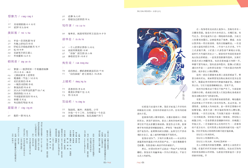該雜志的內(nèi)容結(jié)構(gòu)精心設(shè)計(jì),既有對(duì)古典文學(xué)的深度挖掘,也有對(duì)現(xiàn)代文學(xué)創(chuàng)作的關(guān)注。內(nèi)容大致可以分為以下幾個(gè)部分:精選唐詩(shī)宋詞、元曲、明清小說(shuō)等古典文學(xué)作品,配以專(zhuān)業(yè)的解讀和分析,讓讀者能夠更深入地理解作品背后的歷史背景和文化意蘊(yùn)。收錄當(dāng)代文學(xué)界的精品佳作,無(wú)論是散文、小說(shuō)還是詩(shī)歌,都力求展現(xiàn)最新的文學(xué)創(chuàng)作風(fēng)貌和思想趨勢(shì)。定期邀請(qǐng)文學(xué)、歷史、哲學(xué)等領(lǐng)域的專(zhuān)家學(xué)者撰寫(xiě)專(zhuān)欄,深入探討中華文化的各個(gè)方面,包括但不限于文化傳承、文學(xué)批評(píng)、思想交流等。