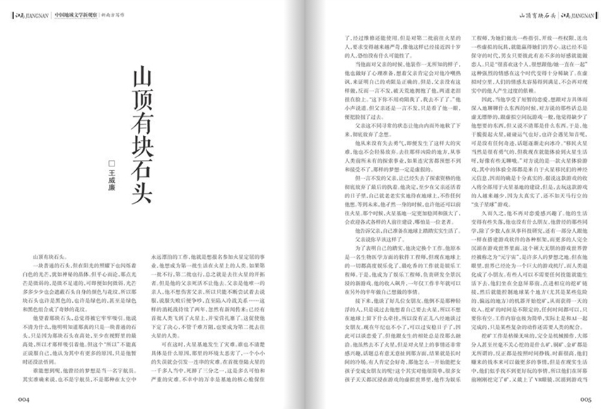 《江南》雜志的宗旨是承載時(shí)代的脈搏,關(guān)注社會(huì)發(fā)展,思考人類命運(yùn)。雜志以開放包容的姿態(tài),囊括了文學(xué)、藝術(shù)、音樂、電影、設(shè)計(jì)、建筑等多個(gè)領(lǐng)域的內(nèi)容,力求為讀者呈現(xiàn)一個(gè)多元、豐富的文化視野。在內(nèi)容上,該雜志注重深度剖析和細(xì)膩觀察。每期雜志都會(huì)推出一些精心策劃的專題,圍繞著社會(huì)熱點(diǎn)、文化趨勢(shì)、時(shí)尚潮流展開深入報(bào)道和討論。在專題之外,雜志還刊登了大量的原創(chuàng)小說、詩歌、散文以及評(píng)論文章,力求將思想和藝術(shù)相結(jié)合,引發(fā)讀者共鳴。