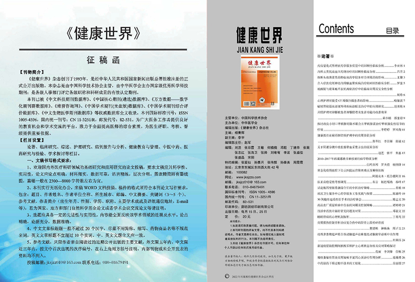 《健康世界》雜志是一本致力于傳播健康知識、提升讀者健康意識的權(quán)威健康類雜志。本雜志以科學、實用、可讀性強為特點,內(nèi)容涵蓋健康養(yǎng)生、健身運動、心理健康、飲食營養(yǎng)、疾病預(yù)防等方面,旨在幫助讀者創(chuàng)建健康的生活方式,提高生活質(zhì)量。該雜志每期均由行業(yè)內(nèi)資深專家、醫(yī)生、保健專家等撰寫,內(nèi)容涵蓋了豐富的健康知識和實用技巧。無論是關(guān)于日常健康保健的小貼士,還是專業(yè)的健康教育知識,都可以在本雜志中找到詳盡的解答和建議。