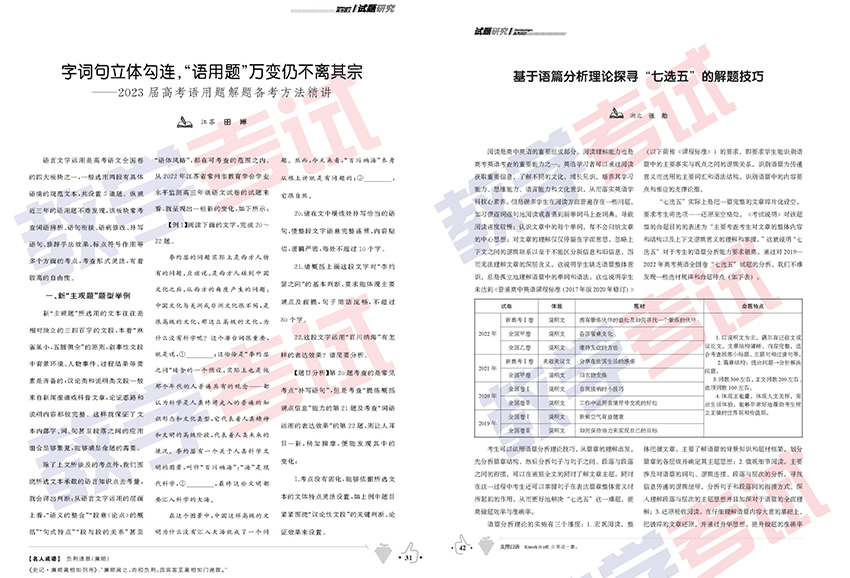 《教學(xué)考試》雜志是一本致力于教育教學(xué)領(lǐng)域的專業(yè)刊物,旨在提供教育工作者、教師、考生等讀者最新的教學(xué)方法、教育政策解讀、考試技巧等方面的資訊和指導(dǎo)。該雜志主要內(nèi)容涵蓋教育教學(xué)理論研究、課程設(shè)計、考試大綱解讀、教學(xué)案例分享、教學(xué)資源推薦、教師教育培訓(xùn)等多方面內(nèi)容。該雜志注重理論與實踐相結(jié)合,注重教學(xué)方法的創(chuàng)新與改進,旨在為提升教育教學(xué)質(zhì)量和效果提供理論指導(dǎo)和實踐支持。
