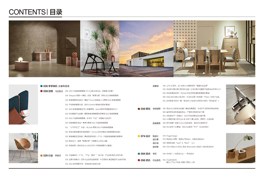 《今日家具》雜志是一本專注于家具設(shè)計、制造和市場趨勢的專業(yè)刊物,旨在為設(shè)計師、制造商、經(jīng)銷商以及對家居設(shè)計有興趣的普通讀者提供豐富的信息和靈感。自從創(chuàng)刊以來,該雜志憑借其深入的行業(yè)分析、前沿的設(shè)計展示、以及對未來趨勢的敏銳洞察,成為了家具行業(yè)內(nèi)外人士不可或缺的閱讀材料。