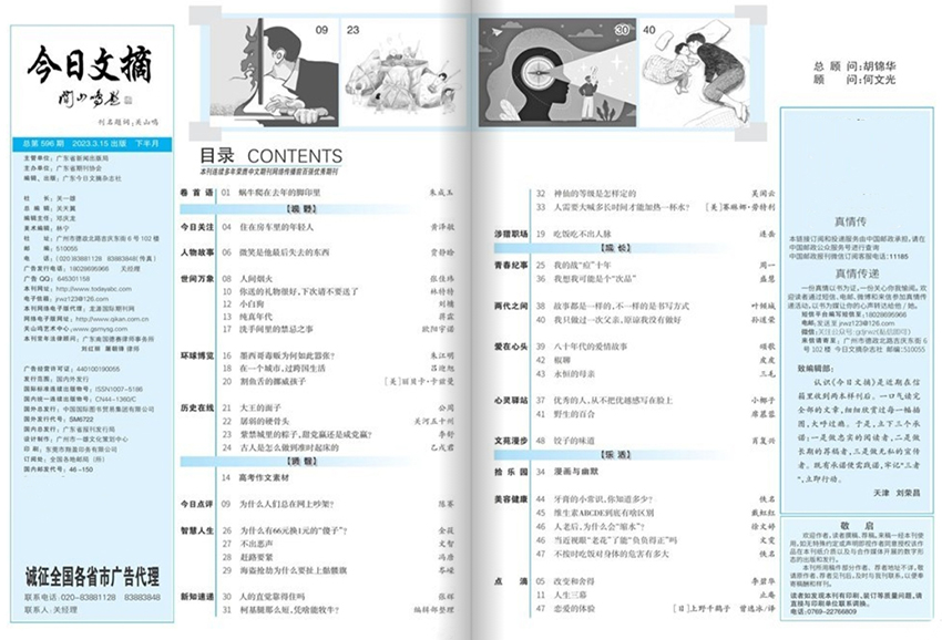 《今日文摘》雜志內(nèi)容廣泛而豐富,涵蓋了人文、社會科學、自然科學、醫(yī)學、經(jīng)濟、金融、教育等各個領(lǐng)域的最新研究成果和前沿觀點。它旨在為讀者提供高質(zhì)量、有深度的知識閱讀,讓讀者能夠了解到當代社會和學術(shù)界的最新動態(tài)。其次,該雜志的特點顯著。雜志注重精品內(nèi)容的選擇和整合,力求提供給讀者真正有價值的資訊。它不僅關(guān)注學術(shù)研究領(lǐng)域的最新進展,還獨辟蹊徑地解讀文化現(xiàn)象、社會問題以及經(jīng)濟趨勢等。同時,雜志以深度分析和詳實報導為特點,確保每一篇文章都有獨立而可靠的來源。