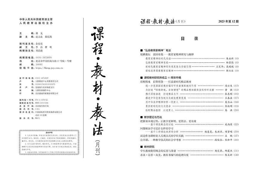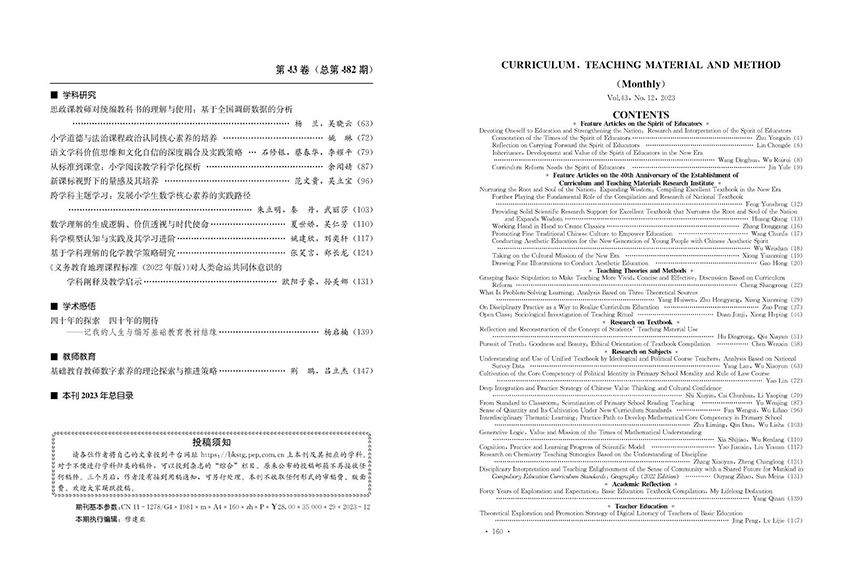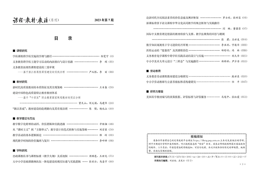 《課程教材教法》雜志是一本專注于教育教學(xué)領(lǐng)域的雜志,旨在推動教育事業(yè)發(fā)展,提高教學(xué)質(zhì)量。該雜志內(nèi)容涵蓋了廣泛的教育領(lǐng)域,包括教育學(xué)、心理學(xué)、教學(xué)方法、課程設(shè)計(jì)等,囊括了豐富的教學(xué)理論、實(shí)踐經(jīng)驗(yàn)和研究成果。該雜志關(guān)注教學(xué)理論的前沿發(fā)展,介紹最新的教育理念和教學(xué)方法。