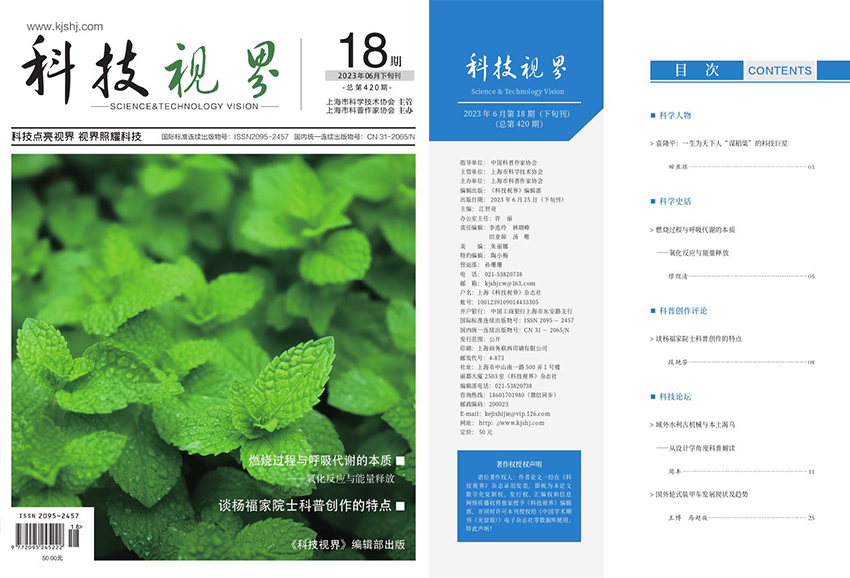 《科技視界》雜志是一本面向科技愛(ài)好者和從事科技行業(yè)的人士的綜合性科技類期刊。本雜志由一支經(jīng)驗(yàn)豐富的編輯團(tuán)隊(duì)和行業(yè)專家組成,致力于傳播最新的科技資訊、發(fā)展趨勢(shì)和科技應(yīng)用的前沿知識(shí)。該雜志致力于成為讀者在科技領(lǐng)域中的指南和啟發(fā),為他們提供最新的科技動(dòng)態(tài)、深度的報(bào)道和專業(yè)的解讀,通過(guò)傳播科技的力量,推動(dòng)社會(huì)的進(jìn)步和創(chuàng)新的發(fā)展。無(wú)論是對(duì)科技感興趣的個(gè)人還是從事科技行業(yè)的專業(yè)人士,都可以從該雜志中獲取到有價(jià)值的信息和思考。
