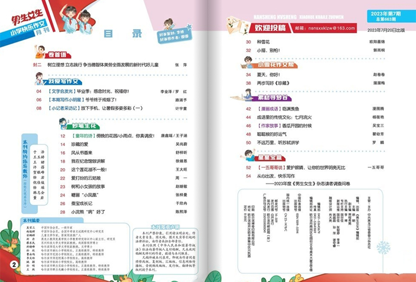 首先,該雜志關(guān)注中學(xué)生朋友們的心情故事。這些故事可能講述的是中學(xué)生面對青春期的煩惱、學(xué)業(yè)壓力、情感困擾等方面的心路歷程。這些故事通常能夠引起讀者共鳴,幫助他們了解自己的感受,同時給予他們積極的思考和解決問題的方法。雜志中還特別關(guān)注優(yōu)秀人物的成長故事。這些人物可能是中學(xué)生中的佼佼者,他們在學(xué)習(xí)、社交和其他方面具備杰出的能力和特質(zhì)。通過講述他們的成長經(jīng)歷,分享他們的學(xué)習(xí)方法和成功的秘訣,鼓勵讀者樹立正確的價值觀,努力向這些優(yōu)秀人物看齊。