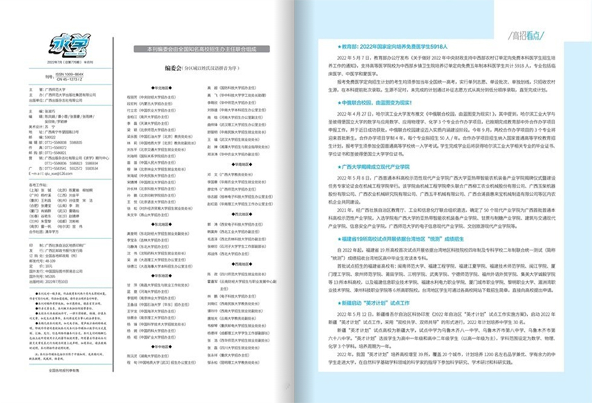 《求學》雜志是一本致力于為廣大學子提供全方位、深入和權(quán)威的教育資訊的期刊。作為國內(nèi)領(lǐng)先的教育類刊物,該雜志已經(jīng)成為了眾多讀者獲取教育信息、學術(shù)資訊和教育動態(tài)的首選媒介。雜志內(nèi)容涵蓋了教育政策解讀、院校評價、留學信息、高考備考技巧、職業(yè)規(guī)劃等多個方面,內(nèi)容豐富多樣,滿足了不同讀者的需求。該雜志秉承著客觀、公正、獨立、深入的宗旨,力求為廣大讀者帶來最真實、最有價值的信息,助力他們實現(xiàn)求學夢想,掌握教育機會。