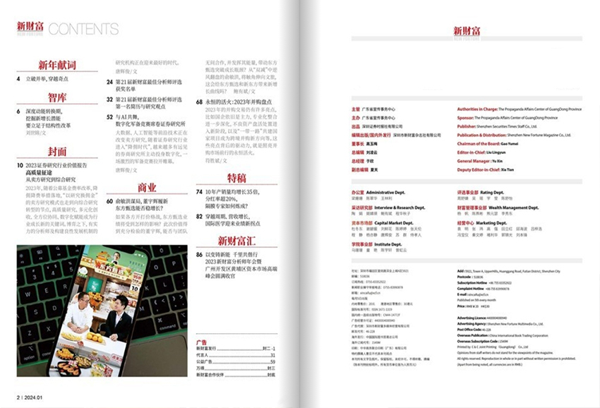 該雜志內(nèi)容涵蓋了廣泛的財(cái)經(jīng)主題,包括股市、投資、基金、房地產(chǎn)、經(jīng)濟(jì)政策、金融科技、人工智能和消費(fèi)行業(yè)等。雜志在每期都會(huì)提供有關(guān)投資理財(cái)?shù)奈恼潞蛯冢瑸樽x者提供投資建議和資訊,助力他們做出明智的投資決策。此外,《新財(cái)富》還關(guān)注社會(huì)問題和環(huán)境可持續(xù)發(fā)展,全面呈現(xiàn)當(dāng)代商業(yè)世界的動(dòng)態(tài)和趨勢(shì)。