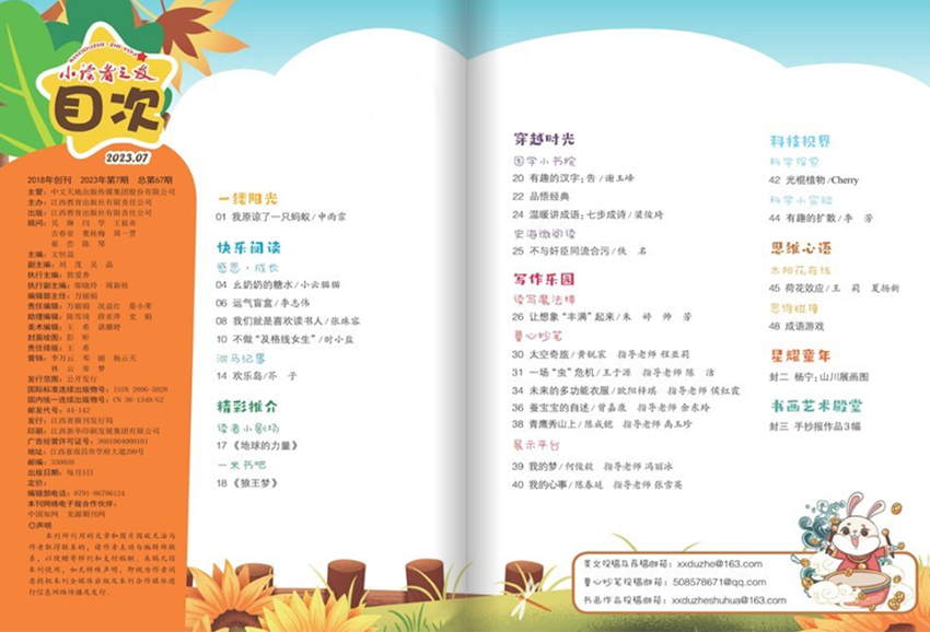 《小讀者之友》是一本以兒童為主要讀者對(duì)象的教育類雜志,該雜志旨在為5至12歲的兒童提供豐富多彩的閱讀內(nèi)容,幫助他們?cè)陂喿x中獲得知識(shí)、啟發(fā)思維,培養(yǎng)良好的閱讀習(xí)慣和品格素養(yǎng)。該雜志的特色在于內(nèi)容的豐富多彩。雜志涵蓋了各種各樣的內(nèi)容,包括兒童文學(xué)作品、科普知識(shí)、趣味游戲、動(dòng)漫漫畫等,每期都有新鮮的內(nèi)容和形式,豐富了孩子們的閱讀體驗(yàn)。不同類型的文章和故事能夠滿足不同年齡段孩子的閱讀需求,讓他們?cè)陂喿x中感受到樂趣和收獲。