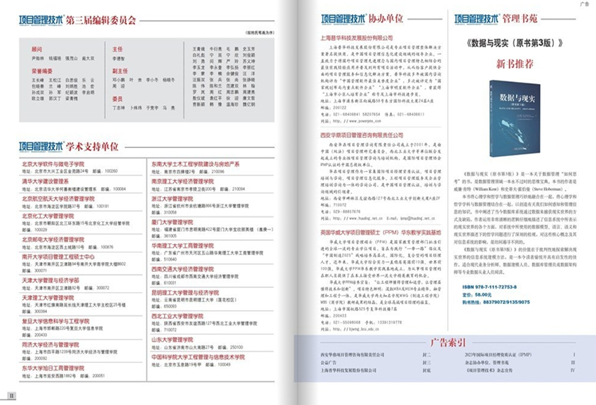 總結起來,該雜志是一本權威、實用、專業(yè)的項目管理期刊,通過提供最新的行業(yè)動態(tài)、案例分析和最佳實踐,幫助讀者在復雜多變的項目環(huán)境中取得成功。雜志還有一定篇幅介紹關于項目管理培訓、認證和學術會議等活動。讀者可以通過這些文章了解到項目管理領域的最新培訓課程、認證要求和學術會議的相關信息。