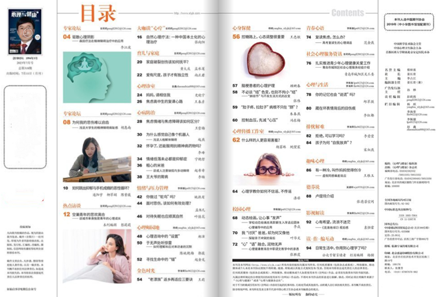 《心理與健康》雜志是國內(nèi)首屈一指的心理健康期刊,主要關(guān)注心理學(xué)和健康領(lǐng)域的最新研究成果和最前沿的學(xué)術(shù)動態(tài),旨在為大眾普及心理健康知識和提供學(xué)術(shù)交流平臺。該雜志以其專業(yè)性、科學(xué)性和生活化的特點,贏得了廣大社會讀者和從業(yè)人員的認可和推崇。無論您是普通讀者,還是專業(yè)的心理學(xué)研究人員,都可以從該雜志中獲得不同層次的心理健康資訊。它是打造社會心理健康、解決人民群眾中心心理問題的有效陣地。