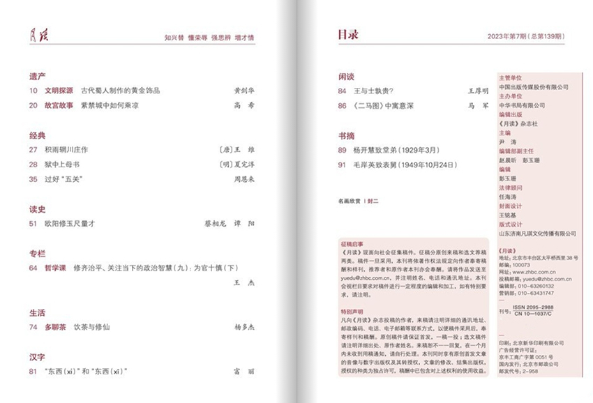 《月讀》是一本極具影響力的文化類刊物,致力于提供深刻的文學(xué)、藝術(shù)和社會評論。該雜志以其獨(dú)特的視角和高質(zhì)量的內(nèi)容在文化界享有盛譽(yù),被譽(yù)為當(dāng)代中國文化闡釋的重要平臺。希望通過這本雜志來呈現(xiàn)新銳、前衛(wèi)的文化觀點(diǎn),并為廣大讀者提供精彩紛呈的文學(xué)作品、深刻的思想評論和獨(dú)特的藝術(shù)視角。雜志的名字“月讀”寓意著每個月都將為讀者帶來新鮮、有趣且不同尋常的閱讀體驗。