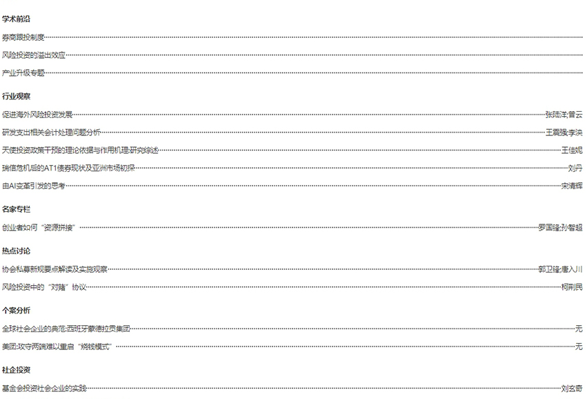《中國風險投資》是中國領(lǐng)先的風險投資行業(yè)雜志,致力于報道和分析國內(nèi)外風險投資領(lǐng)域的最新動態(tài)、趨勢和案例。本雜志旨在為投資者、創(chuàng)業(yè)者、政府機構(gòu)以及相關(guān)行業(yè)從業(yè)者提供專業(yè)的資訊和見解,促進風險投資生態(tài)系統(tǒng)的健康發(fā)展。本雜志關(guān)注國內(nèi)外風險投資市場的最新動態(tài)和趨勢。通過對市場行情、政策法規(guī)、經(jīng)濟環(huán)境等因素的深入分析,為讀者提供準確、及時的投資方向和決策參考。
