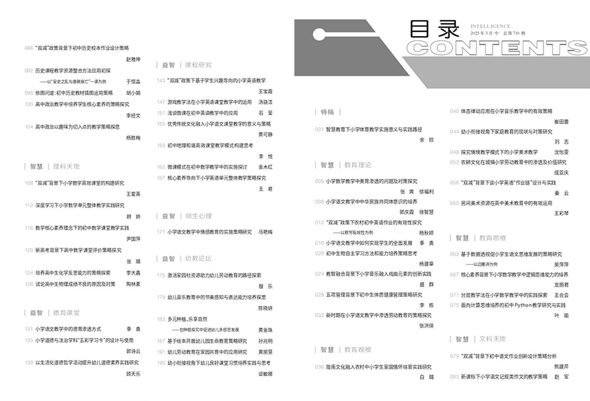 此外,該雜志還會(huì)定期刊登一些與智力相關(guān)的文章和資訊,介紹最新的研究成果、智力競(jìng)賽動(dòng)態(tài)、智力訓(xùn)練方法等內(nèi)容。這些文章不僅能夠讓讀者了解到智力領(lǐng)域的最新動(dòng)態(tài),還能夠?yàn)樗麄兲峁└嗟膶W(xué)習(xí)資源和啟發(fā),幫助他們?cè)谥橇︻I(lǐng)域不斷進(jìn)步。無(wú)論是孩子還是成年人,無(wú)論是業(yè)余愛(ài)好者還是專(zhuān)業(yè)從業(yè)者,都可以從這本雜志中找到樂(lè)趣和收獲,讓自己變得更加聰明、靈活和富有創(chuàng)造力。