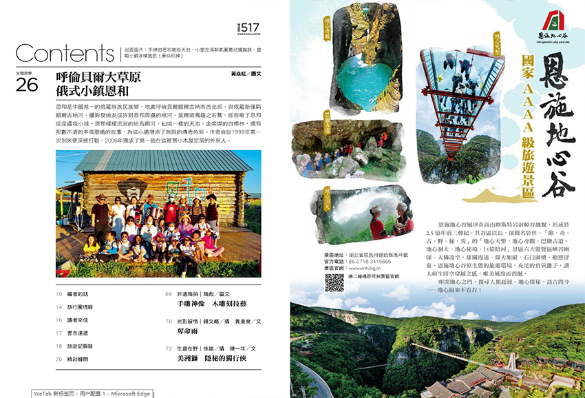 雜志的內(nèi)容豐富多樣,涵蓋了中國各地的旅游景點(diǎn)、歷史文化、民俗風(fēng)情、名人故居、古跡遺址、自然風(fēng)光等方面。無論是對(duì)中國本土的讀者還是對(duì)外國游客來說,這些文章都提供了很好的參考和指導(dǎo),讓人們更好地了解中國的文化遺產(chǎn)和美麗景觀。除了旅游景點(diǎn)的介紹,雜志還提供了旅游策劃的專業(yè)知識(shí)和經(jīng)驗(yàn)分享。讀者可以了解到如何制定旅游計(jì)劃、如何選擇旅游線路、如何避免旅游陷阱等實(shí)用信息。這些文章由專業(yè)的旅游策劃師和專家撰寫,確保讀者獲得準(zhǔn)確和可靠的建議。
