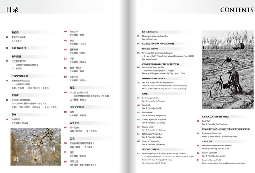 《中國(guó)攝影家》雜志的內(nèi)容包括:專(zhuān)題報(bào)道、作品欣賞、技術(shù)交流、名家訪談、國(guó)際攝影活動(dòng)報(bào)道等。其中,專(zhuān)題報(bào)道是該雜志的特色之一,每期都會(huì)針對(duì)某個(gè)主題進(jìn)行深入的報(bào)道和分析,如人像攝影、風(fēng)光攝影、紀(jì)實(shí)攝影等,旨在幫助讀者更好地了解和掌握不同類(lèi)型攝影的技巧和方法。作品欣賞是該雜志的另一個(gè)重要欄目,每期都會(huì)刊登國(guó)內(nèi)外攝影家的優(yōu)秀作品,這些作品涵蓋了各種類(lèi)型的攝影,從風(fēng)景、人物到紀(jì)實(shí)攝影,從黑白到彩色,無(wú)所不包。這些作品不僅具有觀賞性和欣賞性,更重要的是它們展示了攝影藝術(shù)的多樣性和深度。