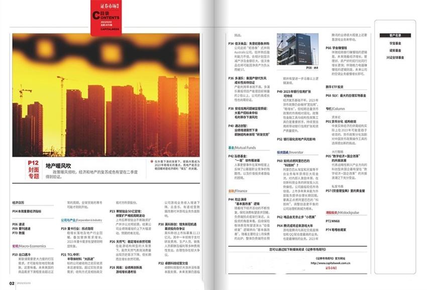《證券市場(chǎng)周刊》致力于提供高質(zhì)量的內(nèi)容,為讀者提供獨(dú)立、準(zhǔn)確和深入的分析。在雜志的每一期中,為了滿(mǎn)足讀者的需求,會(huì)有一系列的投資專(zhuān)題,涵蓋股市、債券、期貨、外匯、基金等各類(lèi)資產(chǎn)類(lèi)別。此外,該雜志還會(huì)對(duì)行業(yè)趨勢(shì)和前沿技術(shù)進(jìn)行深入研究,為讀者提供投資機(jī)會(huì)和發(fā)展趨勢(shì)的全面了解。