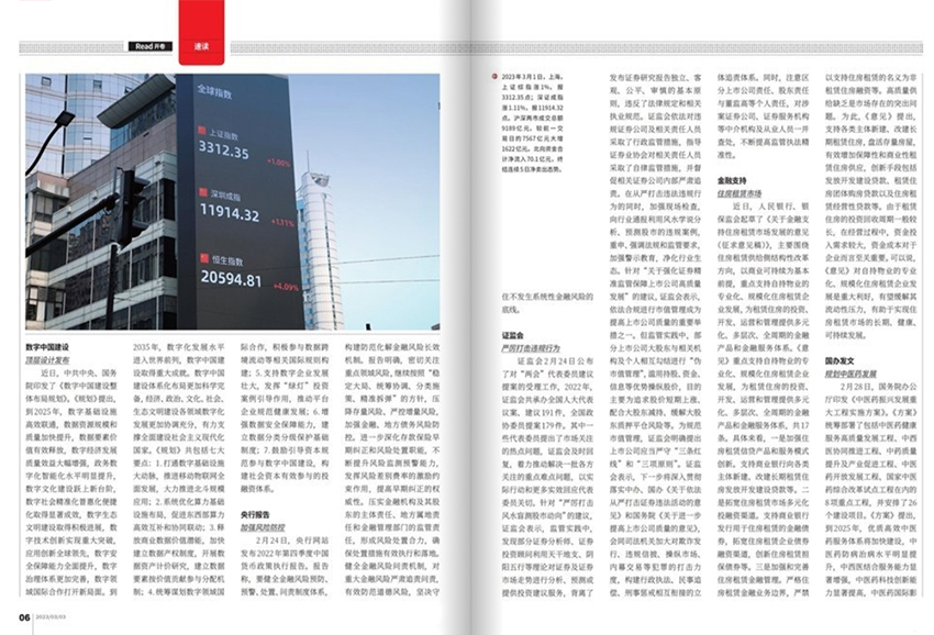 該雜志的內(nèi)容涵蓋市場(chǎng)熱點(diǎn)、政策解讀、投資策略、公司分析等多個(gè)方面。除了紙質(zhì)版雜志外,為讀者提供全方位的財(cái)經(jīng)資訊服務(wù)。讀者可以通過(guò)不同的渠道獲取最新的市場(chǎng)動(dòng)態(tài),及時(shí)了解各種投資產(chǎn)品的情況,并參考專(zhuān)家意見(jiàn)做出理性的投資決策。它通過(guò)對(duì)市場(chǎng)動(dòng)態(tài)、股市走勢(shì)、宏觀經(jīng)濟(jì)研究、行業(yè)分析等領(lǐng)域深入的報(bào)道和解讀,為讀者提供了獨(dú)特的視角和洞察力。